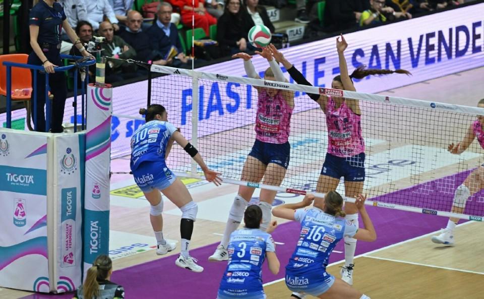 3月16日凌晨,女排意甲半决赛首场比赛开打,科内利亚诺队在主场迎战诺瓦拉队。本场比赛双方战满5局,科内利亚诺让二追三3-2实现大逆转,在五场三胜的系列赛当中1-0占得先机。中国球员朱婷在比赛中拿下21分,并荣膺单场MVP。