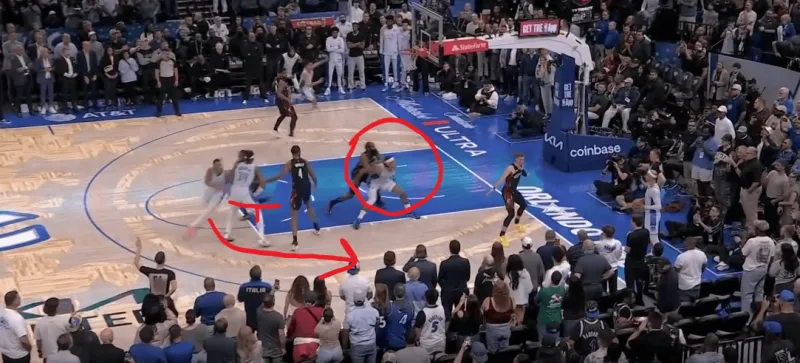 关键回合的底线球,贝恩先是为班凯罗掩护到低位要球,随后自己借卡特掩护兜出,萨格斯选择传球给跑出空当的贝恩,后者高难度接球三分命中杀死比赛: