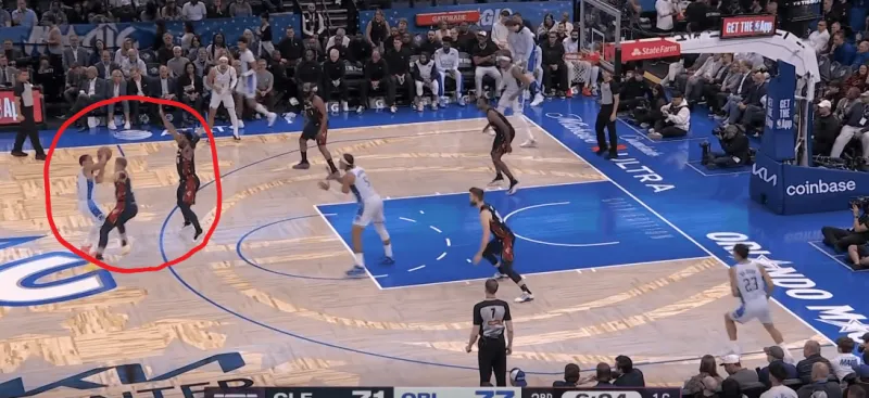 贝恩和班凯罗的持球掩护发起也在体型上惩罚骑士的后场,无论是夹击还是换防,贝恩和班凯罗都能拿到优势对位,